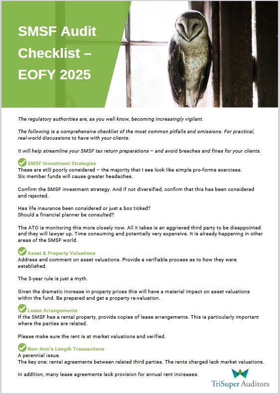 And as ever, if you have any SMSF questions at all, please don't hesitate to contact Joel Curry on 1300 874 787 or email audits@trisuperauditors.com.au.